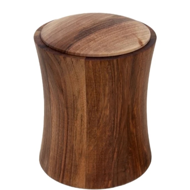 EO-2 Die Urne ist aus ausgewählten heimischen Walnußholz gemacht, aus ökologischem Leim geklebt und mit natürlichem Öl überzogen . Den genauen Verlauf unserer Herstellung, können Sie sich in unserem Film auf unserer Webseite ansehen.