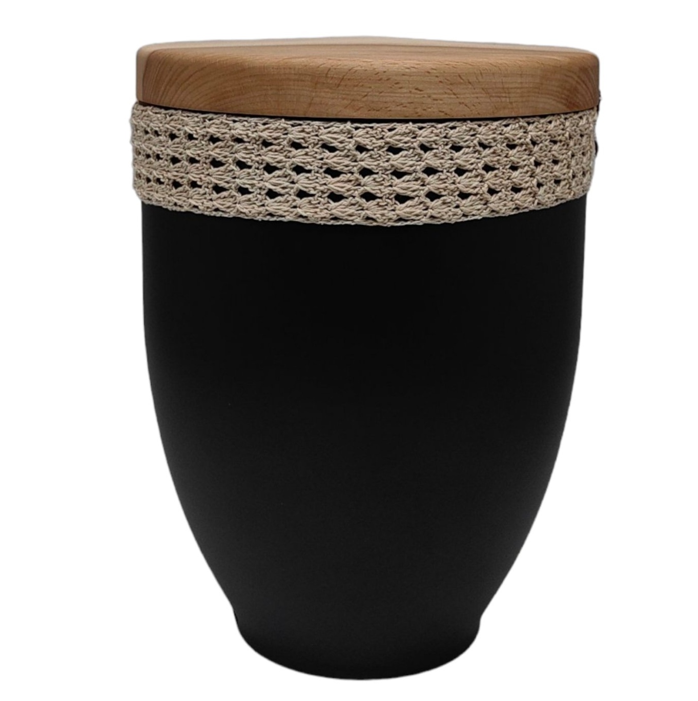 Urnen in kombination von Metall mit Holzdeckel sind sehr atraktiv.