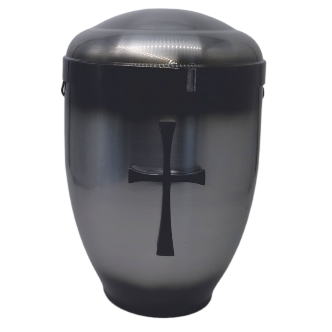 Zuerst nehmen wir die Urne aus der Presse (kaltgezogenes Metall), wo sie Ihre Form bekommt, danach wird sie von Öl und Fett saubergemacht, geschlifft, bemalt und mit hochwertigen Materialen lackiert, die auch in der Automobilindustrie verwendet werden. Die Urnen werden am nächsten Tag überprüft, bei Bedarf poliert und bei der Montage mit hochwertigen Dekorationen aus Messing (Kreuze, Blumen, Hände...) montiert.