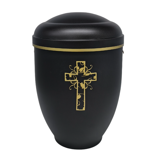Zuerst nehmen wir die Urne aus der Presse (kaltgezogenes Metall), wo sie Ihre Form bekommt, danach wird sie von Öl und Fett saubergemacht, geschlifft, bemalt und mit hochwertigen Materialen lackiert, die auch in der Automobilindustrie verwendet werden. Die Urnen werden am nächsten Tag überprüft, bei Bedarf poliert und bei der Montage mit hochwertigen Dekorationen aus Messing (Kreuze, Blumen, Hände...) montiert.