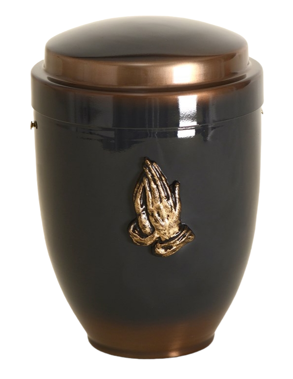 Zuerst nehmen wir die Urne aus der Presse (kaltgezogenes Metall), wo sie Ihre Form bekommt, danach wird sie von Öl und Fett saubergemacht, geschlifft, bemalt und mit hochwertigen Materialen lackiert, die auch in der Automobilindustrie verwendet werden. Die Urnen werden am nächsten Tag überprüft, bei Bedarf poliert und bei der Montage mit hochwertigen Dekorationen aus Messing (Kreuze, Blumen, Hände...) montiert.